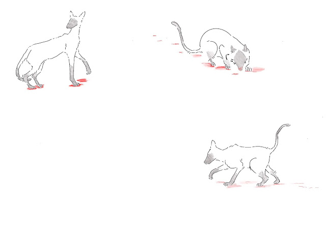 Above is my more successful outcome of the cat jumping out of frame with the shadow following it.